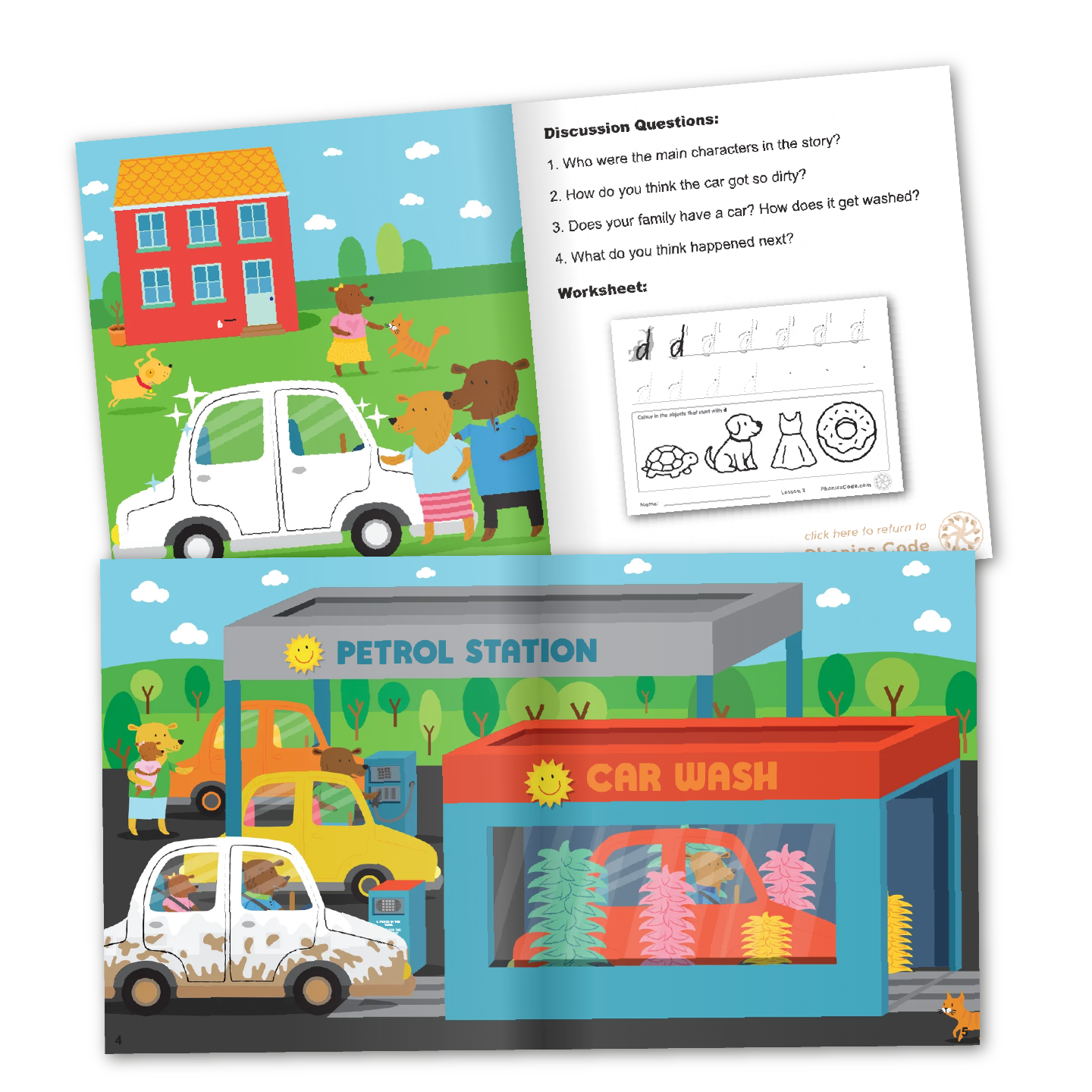 Phonics Code Book 3 is a wordless reader designed to introduce the sound /d/ while developing a child's language, communication and vocabulary skills. Listen to the student as they turn each page and retell the story in their own words. Use the discussion questions on the last page to further comprehension, vocabulary and expressive language skills.