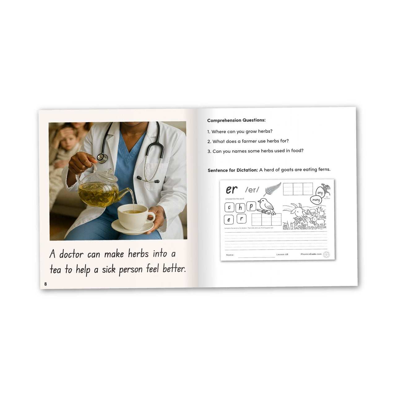 Phonics Code Book 68 introduces the 'r' controlled vowel digraph /er/