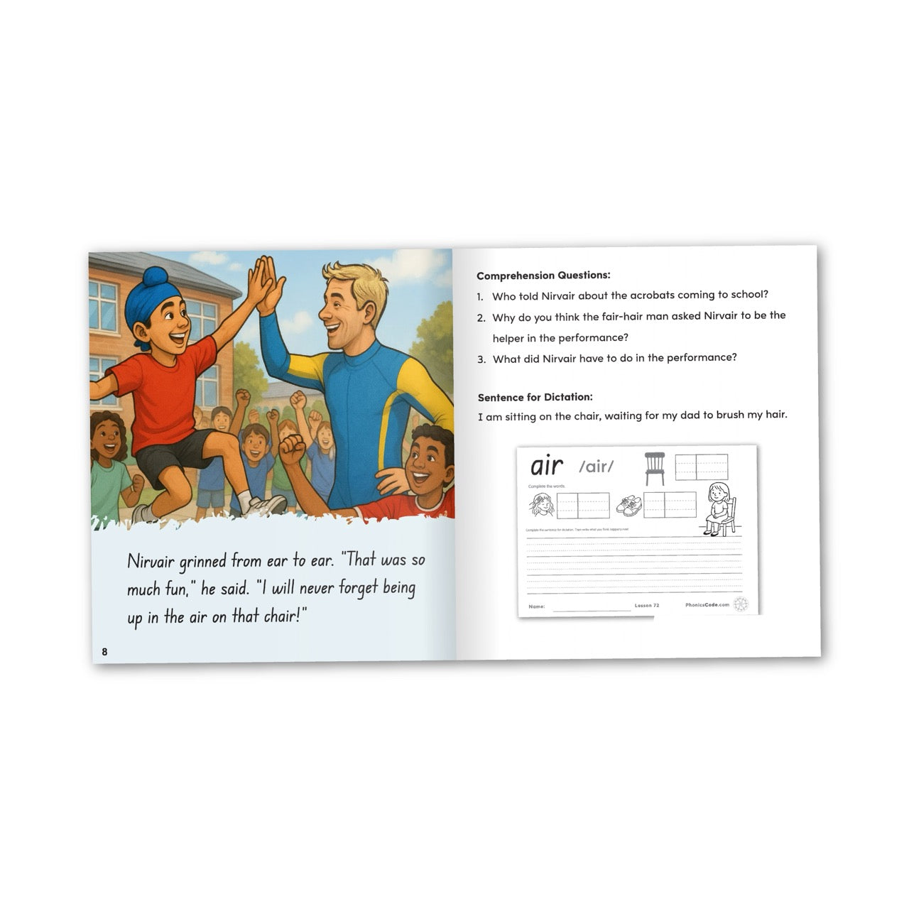 Phonics Code Book 72 introduces the 'r' controlled vowel digraph /air/
