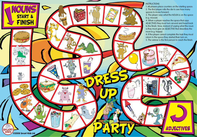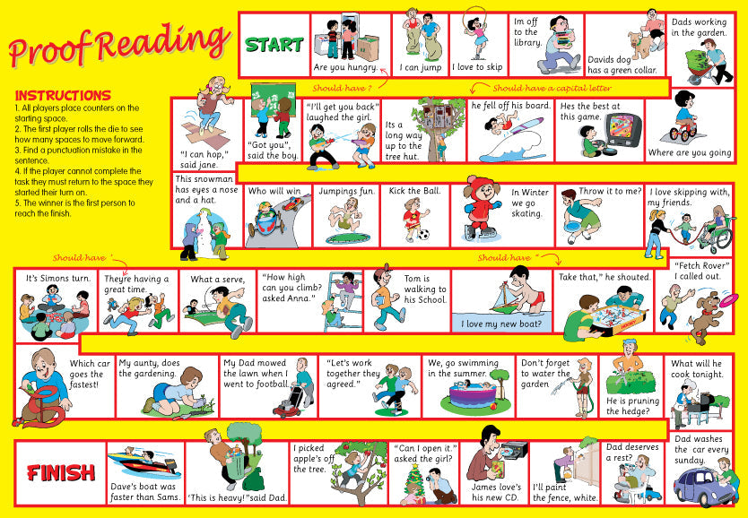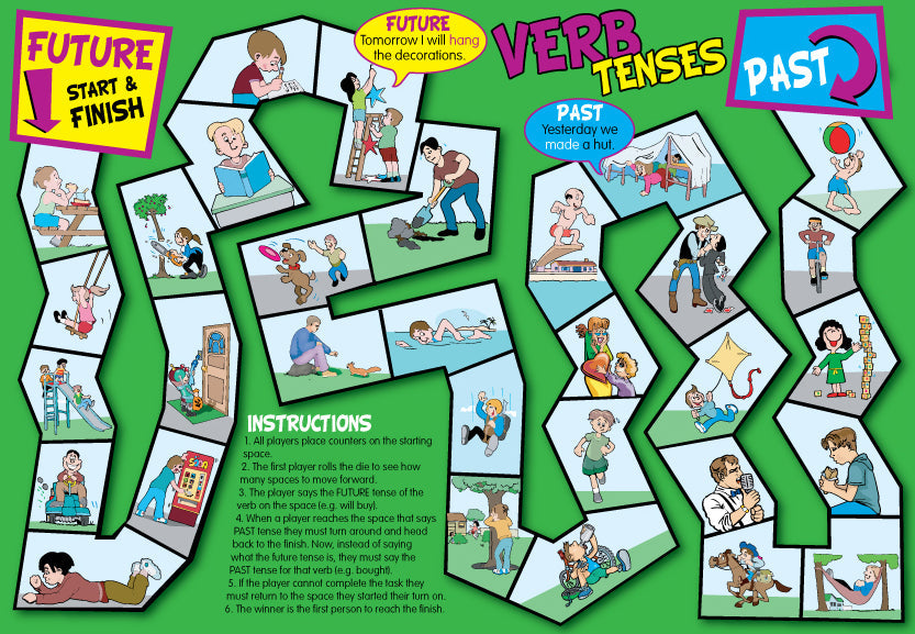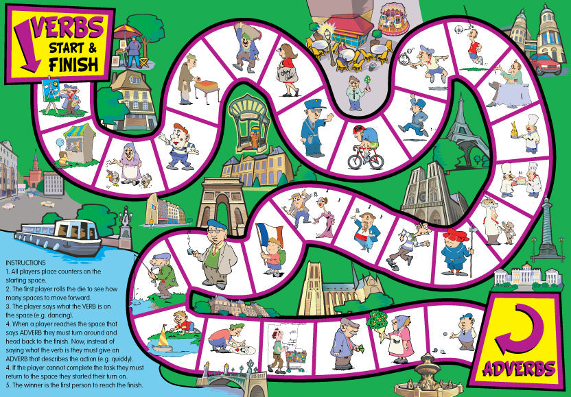 These 6 board games will help children expand their vocabulary and become confident with different parts of speech. Each board game covers a different area: nouns, adjectives, prepositions, conjunctions, adverbs, verbs, tenses and sentence building. The bright illustrations will keep pupils interested and engaged. Each game has playing instructions printed on the board for ease of use. Suitable for pupils aged 7-11 and older children with special needs. They can also be helpful for use with children learning English as a second language. Each boxed game contains 6 playing boards made from durable cardboard, counters, a die and spinners.