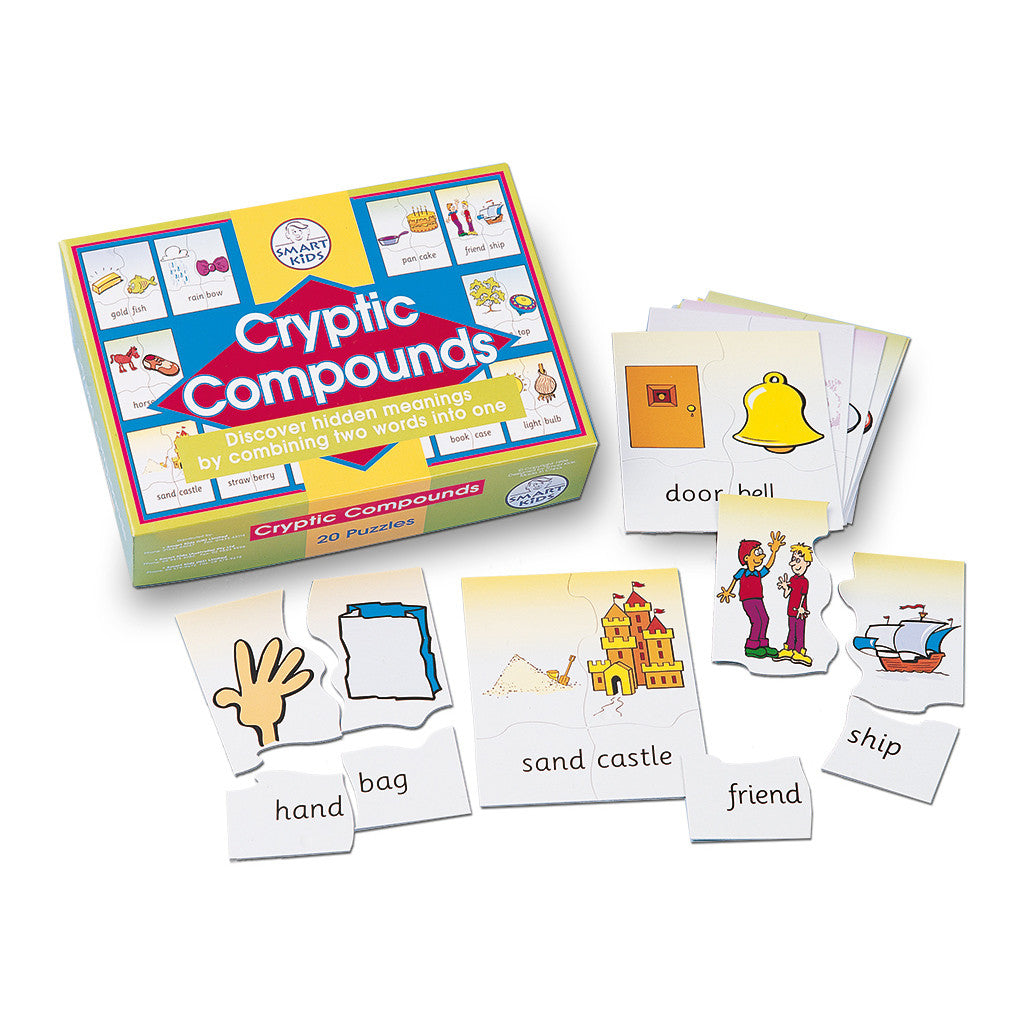 These self-checking puzzles are ideal for teaching the recognition and practise of familiar compound words. Children are encouraged to use the meanings of words within the compound word as a fun way of learning the complete words meaning and spelling. Each box contains 20 self-correcting puzzles.