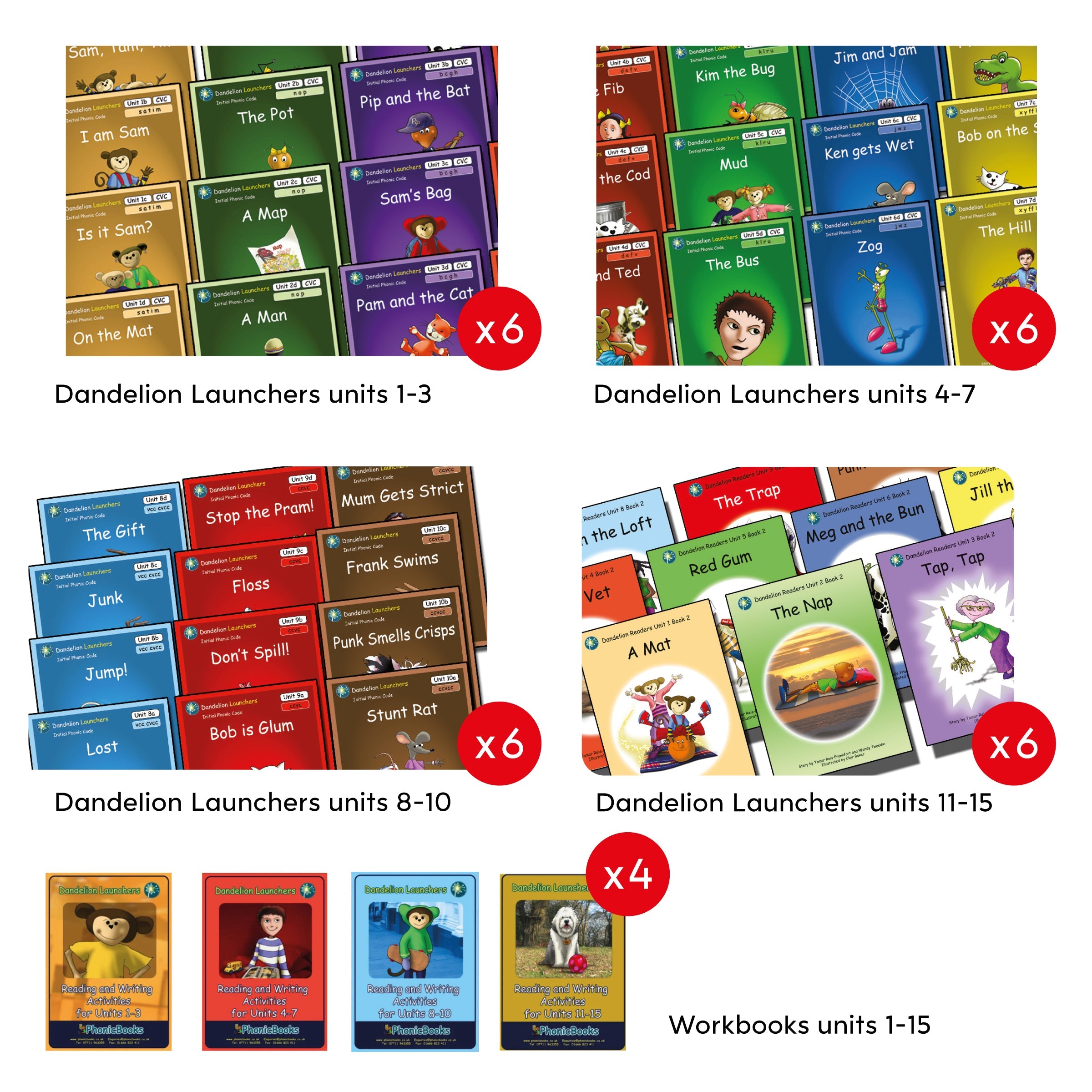 This bundle consists of four (6) sets of each unit (360 readers in total), along with one (1) of each corresponding workbook (4 workbooks in total). Each reader has one line of text per page. The Dandelion Launchers are an ideal reading resource for any phonics reading program. Each set focuses on a specific set of sounds and includes a reading game.