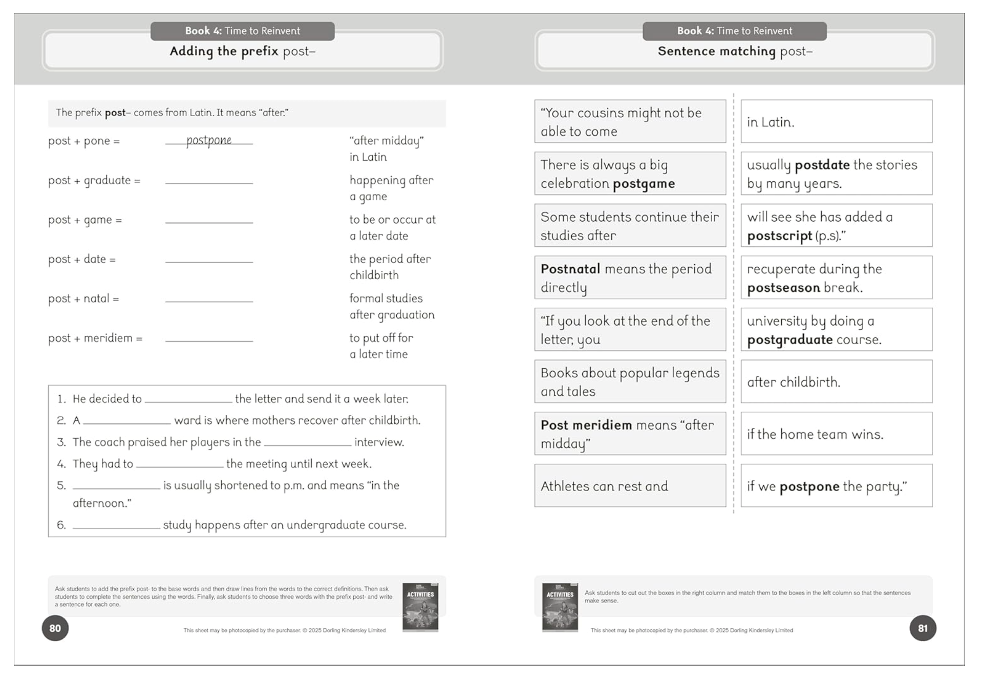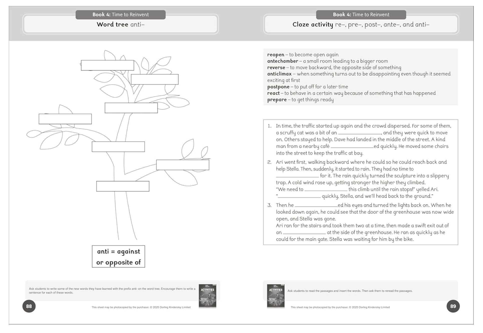 This activity book introduces a range of suffixes, prefixes and root words and contains reading comprehension and spelling activities using English morphology linked to the books in the Phonic Books Dark Waters series.