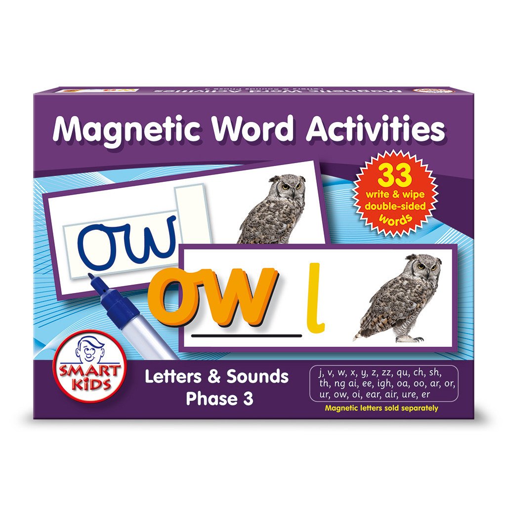 Designed specifically for Letters and Sounds Phase 3 these double-sided, colour coded write and wipe word examples provide essential word building practice and will be sure to develop pupil's blending and segmenting skills and letter sound knowledge. Use magnetic letters (sold separately) to build the word matched to the corresponding picture and then use a dry-wipe marker pen on the reverse to complete the phoneme frame. Ideal for children aged 4+; these brilliant multisensory activities contain real-life photography, making these appealing to older learners with gaps in their phonic knowledge. Contents: 33 Double-sided Activities.
