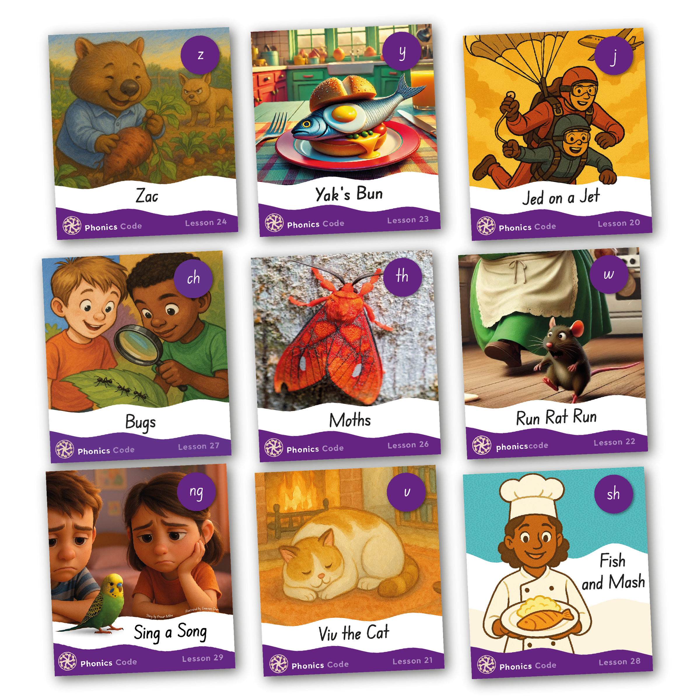 Phonics Code books have been especially written for New Zealand teachers. The books follow the Ready to Read Phonics Plus scope and sequence with a minimal number of tricky/heart words, so you can easily integrate them into your existing programme. Engaging and humorous stories with appealing illustrations provide rich stimulus for discussion.