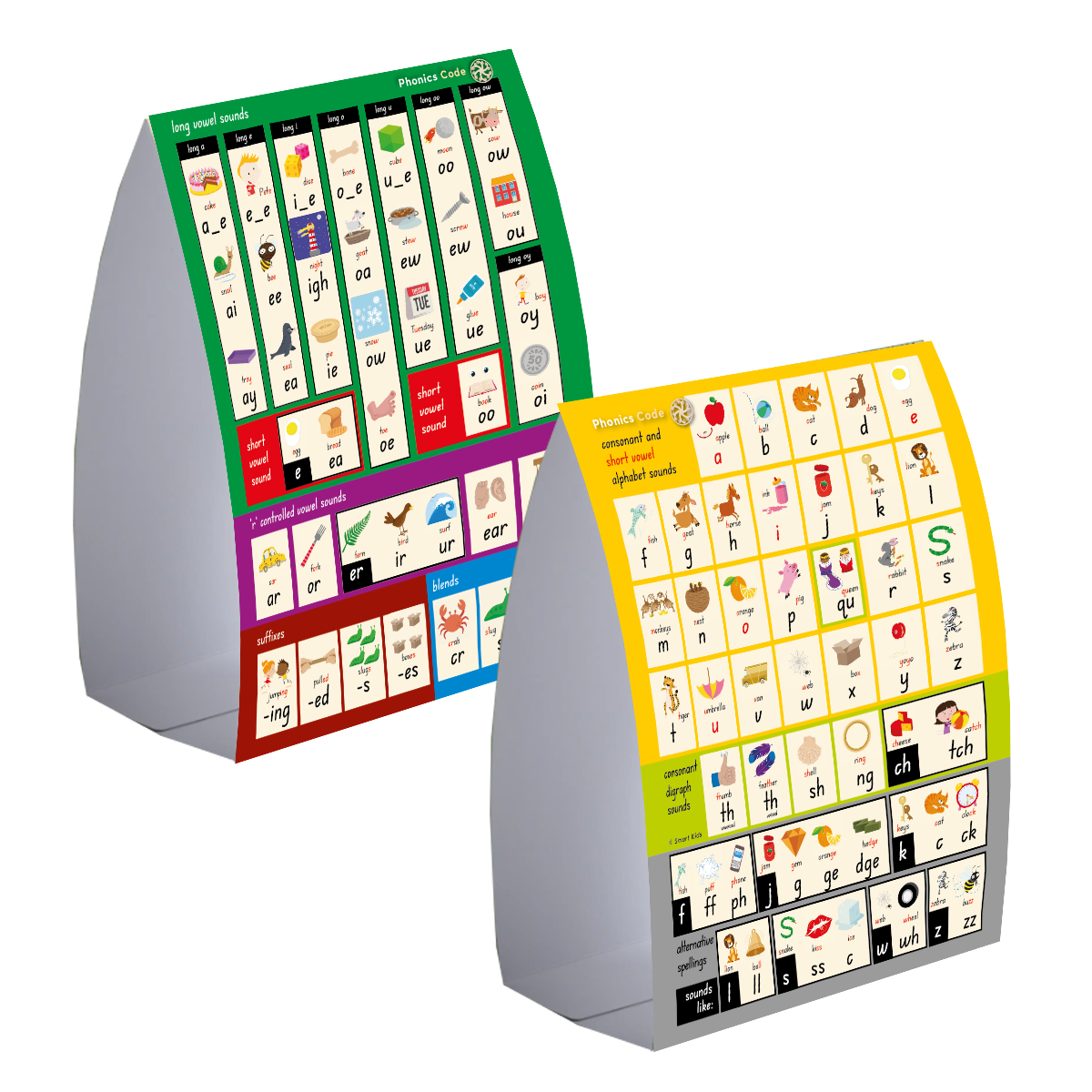 One side focuses on consonant sounds, giving children an at-a-glance guide to: